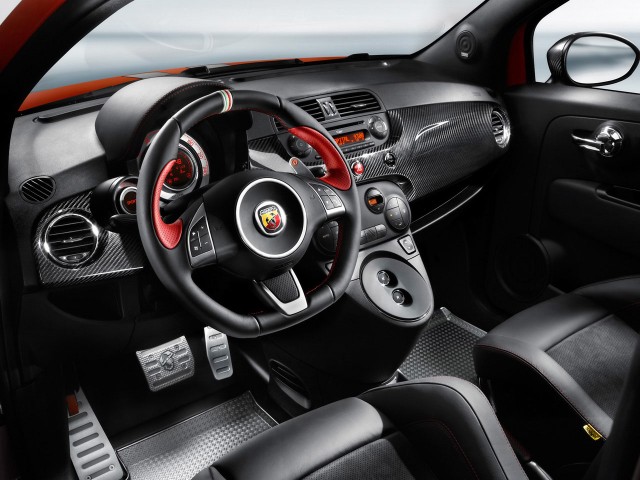 Car, carbon fiber wheels, rear door, outside Reddosukuderia gray finish a few races and back vents. Abarth is to reduce the vibration characteristics of a new all weather and the main beam, Xenon lights, which are equipped to improve performance. manufacturer Magneti Marelli's automated lighting, these elements are standard halogen lamps, thereby increasing the availability of more than three times the light.